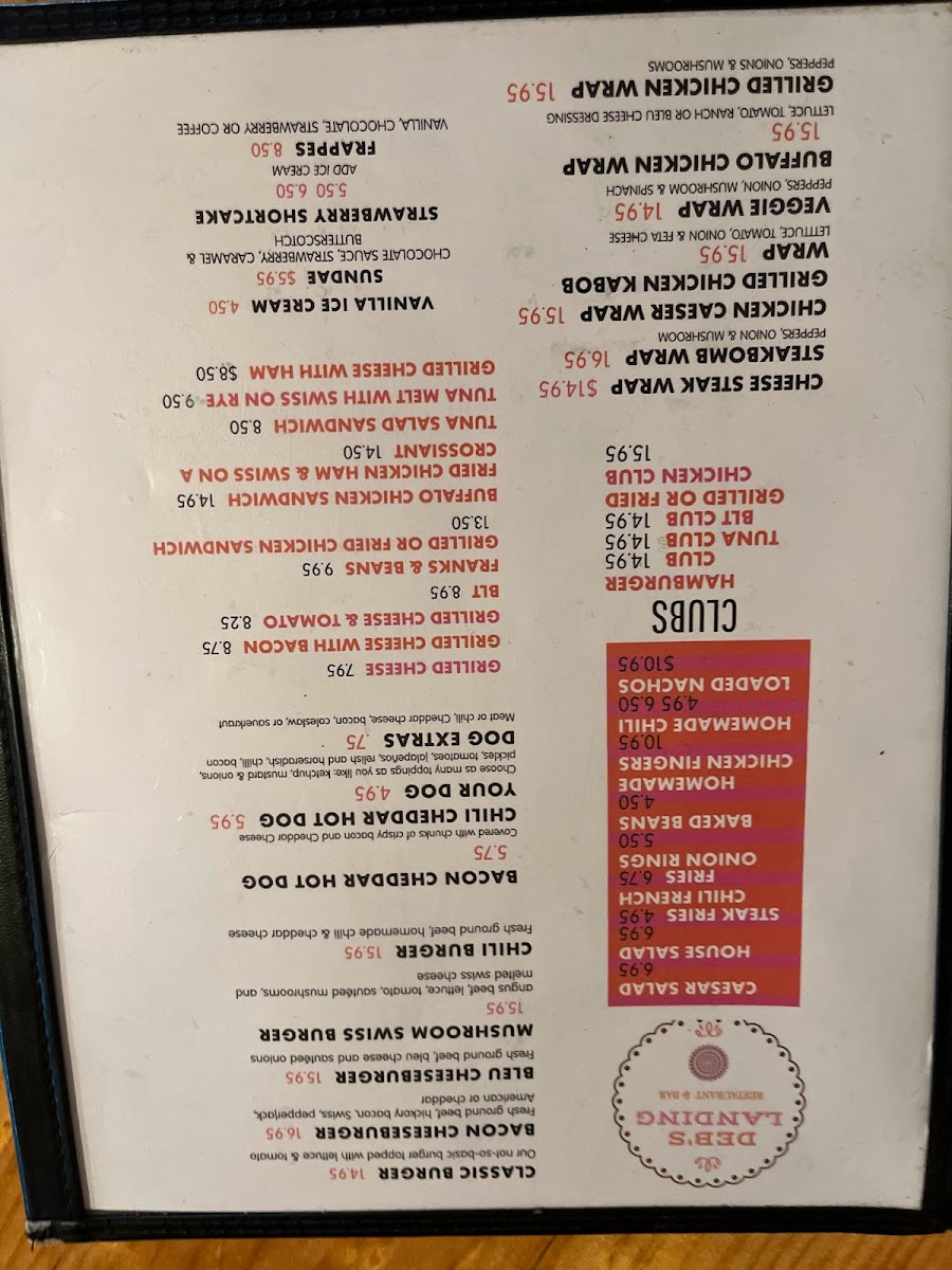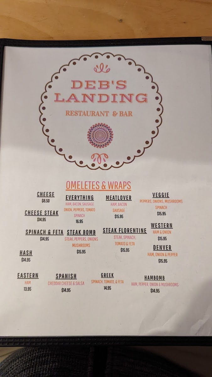 With so many tempting options, it's clear that Deb's Landing has something for everyone, making it a great place to enjoy a comforting meal in a welcoming atmosphere.